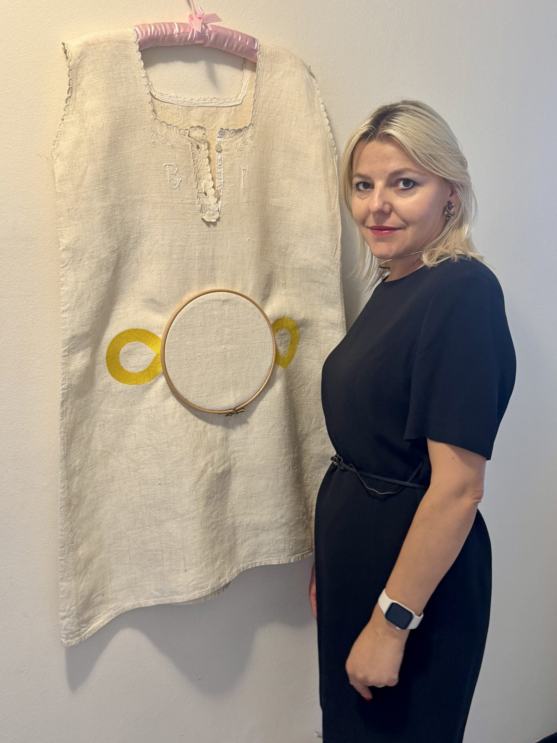 Un antico indumento prende nuova vita, sospeso tra memoria olfattiva e simbolo. Il ricamo si arresta, ma il cerchio del gesto rimane aperto: è il segno della cura, del fare lento, del silenzio tramandato. Il tessuto trattiene le tracce di un passato intimo, mentre il telaio si fa lente: ci invita a guardare oltre, dentro, verso un equilibrio possibile tra natura e artificio.